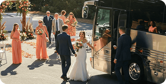 Traveling to wedding events in Raleigh has never been easier than with Easy Bus Travel in charge. Book a bus with a professional driver to chauffeur your guests to a wedding ceremony, reception, bachelor or bachelorette party, bridal shower, and any other wedding celebration.
